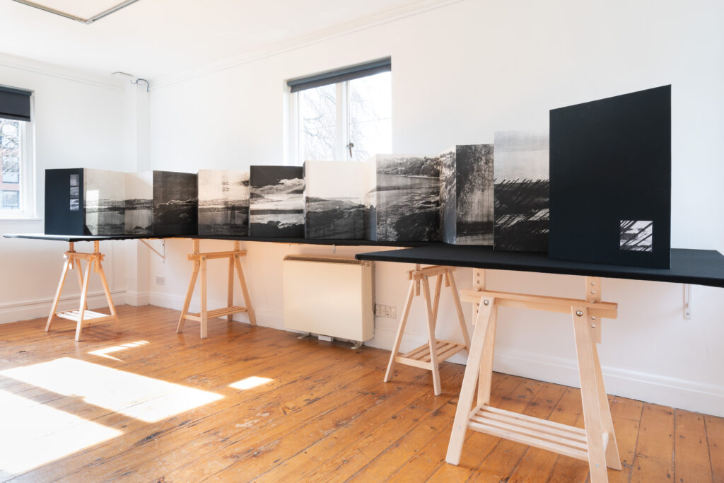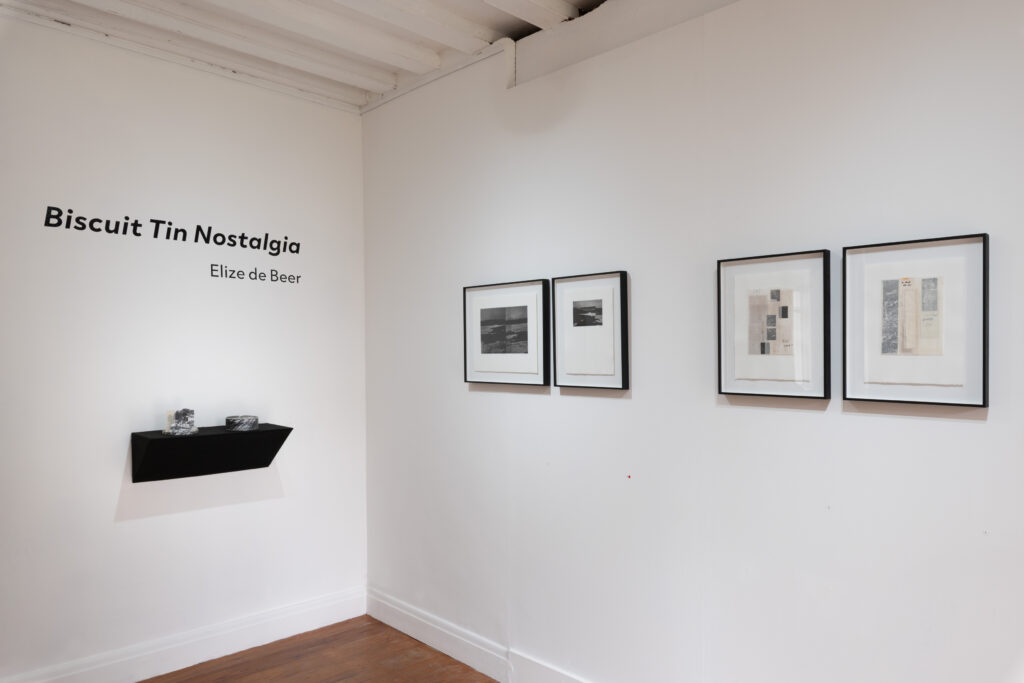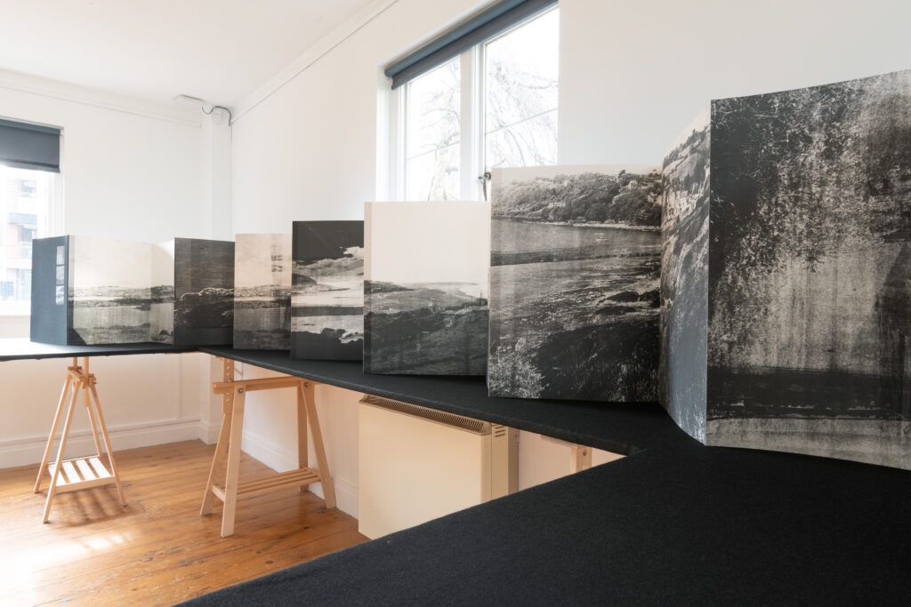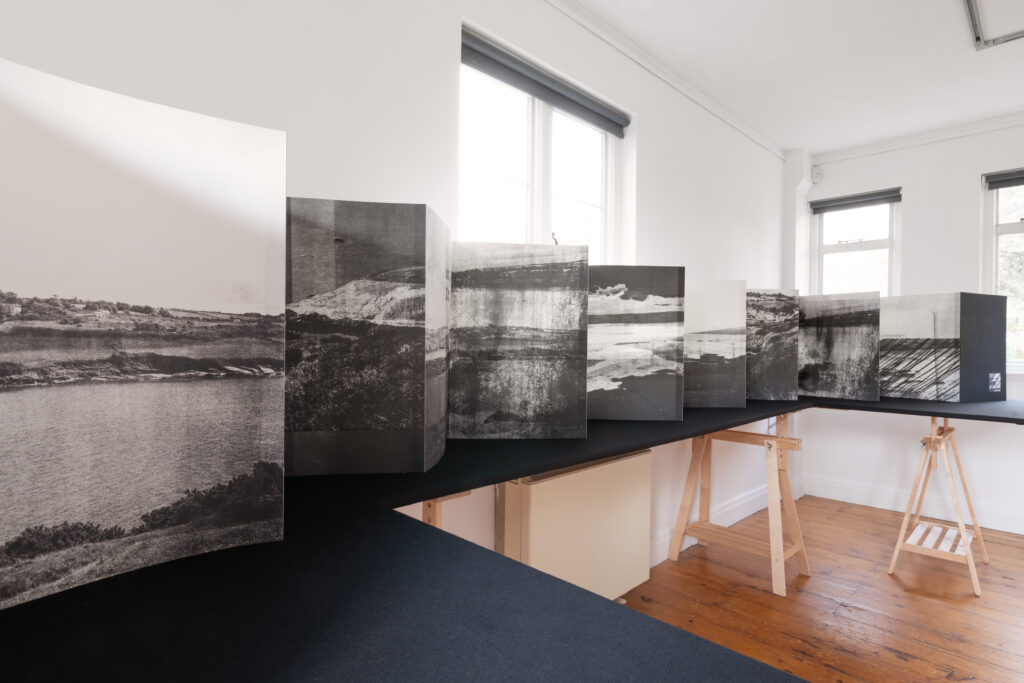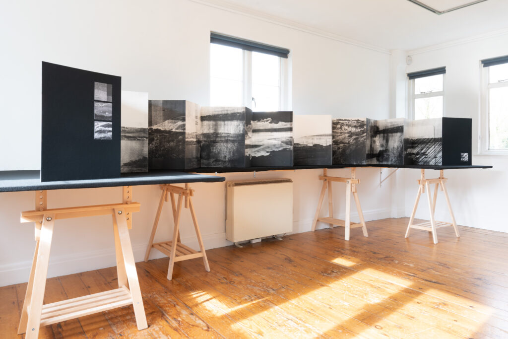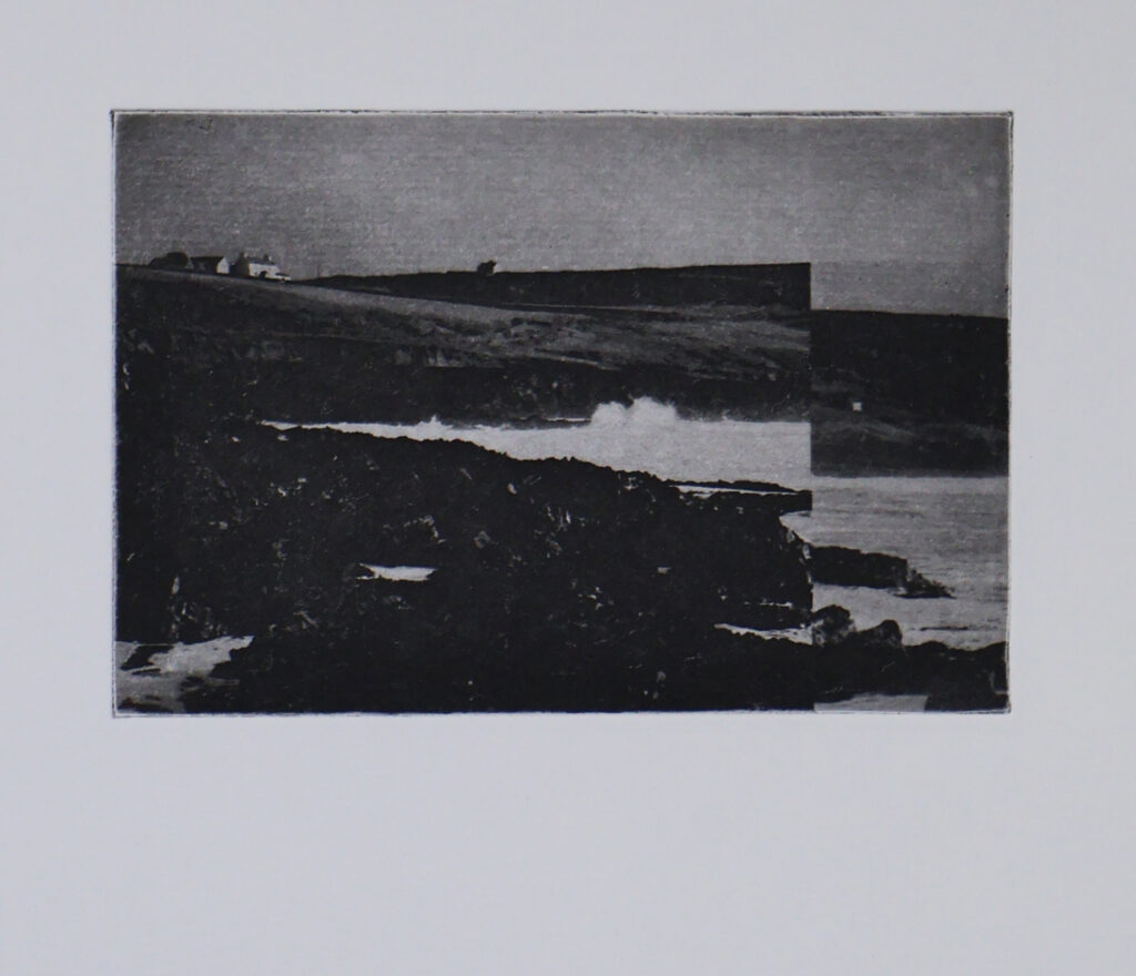 As she did when arriving in Ireland, de Beer explored and navigated the archive by creating connections to the land; drawn to the landscapes and coastal areas to seek a sense of familiarity and belonging. As an outlier herself in a new space, she was drawn to the photographic mistakes, the edited negatives, and double exposures, which informed the visual language of the works. Using the archival materials, de Beer created a series of photo etchings, mixed media works and artist books. The body of work showcases elements of the collection and newly imagined at times dreamlike, landscapes.